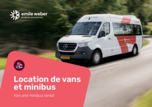 Jusqu’à 8 places Up to 8 seats Permis B Class B driving licence Climatisation Air conditioning Boîte automatique Automatic transmission Vous partez avec des amis ou en famille et vous avez besoin d’un van ou d’un minibus? Vous déménagez et avez besoin d’une camionnette? Avec notre service de location, vous pouvez facilement louer un véhicule en ligne ! Are you going away with friends or family and need a van or minibus? Are you moving house and need a van? With our rental service, you can easily rent a vehicle online! Découvrez l’intégralité de notre flotte et tous les détails des véhicules Discover our entire fleet and all vehicle details at Notre flotte se distingue par sa diversité et couvre tous les besoins, du van confortable au minibus à la camionnette. Our fleet impresses with its diversity and covers all needs, from comfortable vans to minibuses and transporters. Notre flotte Our fleet Flexibilité maximale Réservez votre véhicule en ligne et profitez de la flexibilité de la prise en charge et de la restitution 24h/7j à notre dépôt à Canach et à Fridhaff, même en dehors des heures de bureau. Véhicules modernes Notre flotte moderne va du van au minibus en passant par la camionnette. Tous les véhicules peuvent être conduits avec un permis de conduire automobile (classe B). Voyager en tranquillité Voyager en toute sérénité est essentiel pour nous. Une assurance tous risques est incluse dans chaque location. Grâce à notre assistance 24h/7j et à notre garantie de mobilité, vous pouvez toujours partir l’esprit tranquille. Normes de sécurité les plus élevées Nos véhicules font l’objet d’un entretien et d’une inspection réguliers dans notre propre atelier. Ils sont en outre équipés d’assistants de sécurité modernes. High flexibility Book your vehicle online and take advantage of the flexible 24/7 pick-up and drop-off at the depot in Canach and Fridhaff, even outside office hours. Modern vehicles Our modern fleet ranges from vans and minibuses to transporters. All vehicles can be driven with a car driver’s license (class B). Carefree travel Carefree travel is the most important thing for us. Fully comprehensive insurance is included with every rental. Thanks to our 24/7 hotline and our mobility guarantee, you can always travel with peace of mind. High safety standards Our vehicles undergo regular maintenance and inspections in our in-house workshop. They are also equipped with modern safety assistants . Vos avantages avec emile weber Your benefits with emile weber Standard Class Minibus M & L Utility Class Comfort Class Van Jusqu’à 9 places Up to 9 seats Permis B Class B driving licence Climatisation Air conditioning Boîte automatique ou manuelle Automatic or manual transmission Jusqu’à 20m3 d’espace de rangement Up to 20 m³ Charge utile jusqu’à 750 kg Payload up to 750 kg Permis B Class B driving licence Boîte automatique Automatic transmission